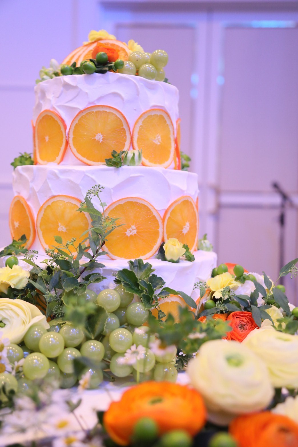 ウェディングケーキはオレンジを使ったナチュラルでビタミンカラーのウェディングケーキ☆