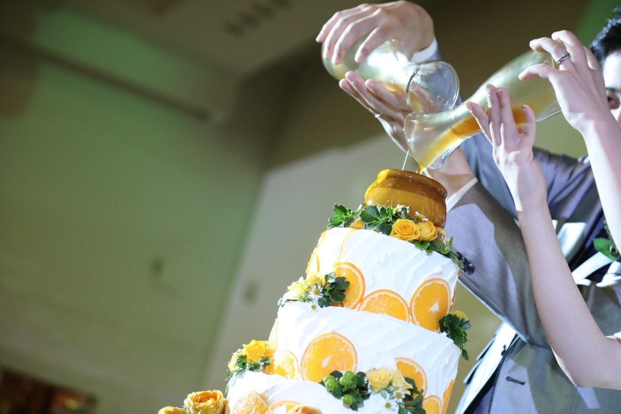 お二人が行った演出はケーキ入刀!!!ではなくカラードリップ♪