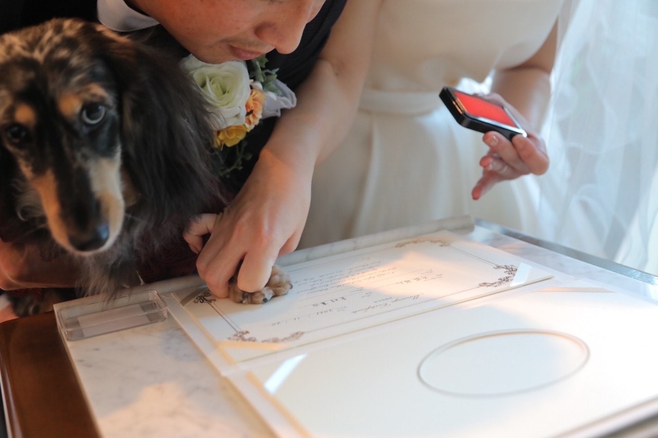 お二人のサインの横に ワンちゃんにも承認のスタンプをしてもらいました★