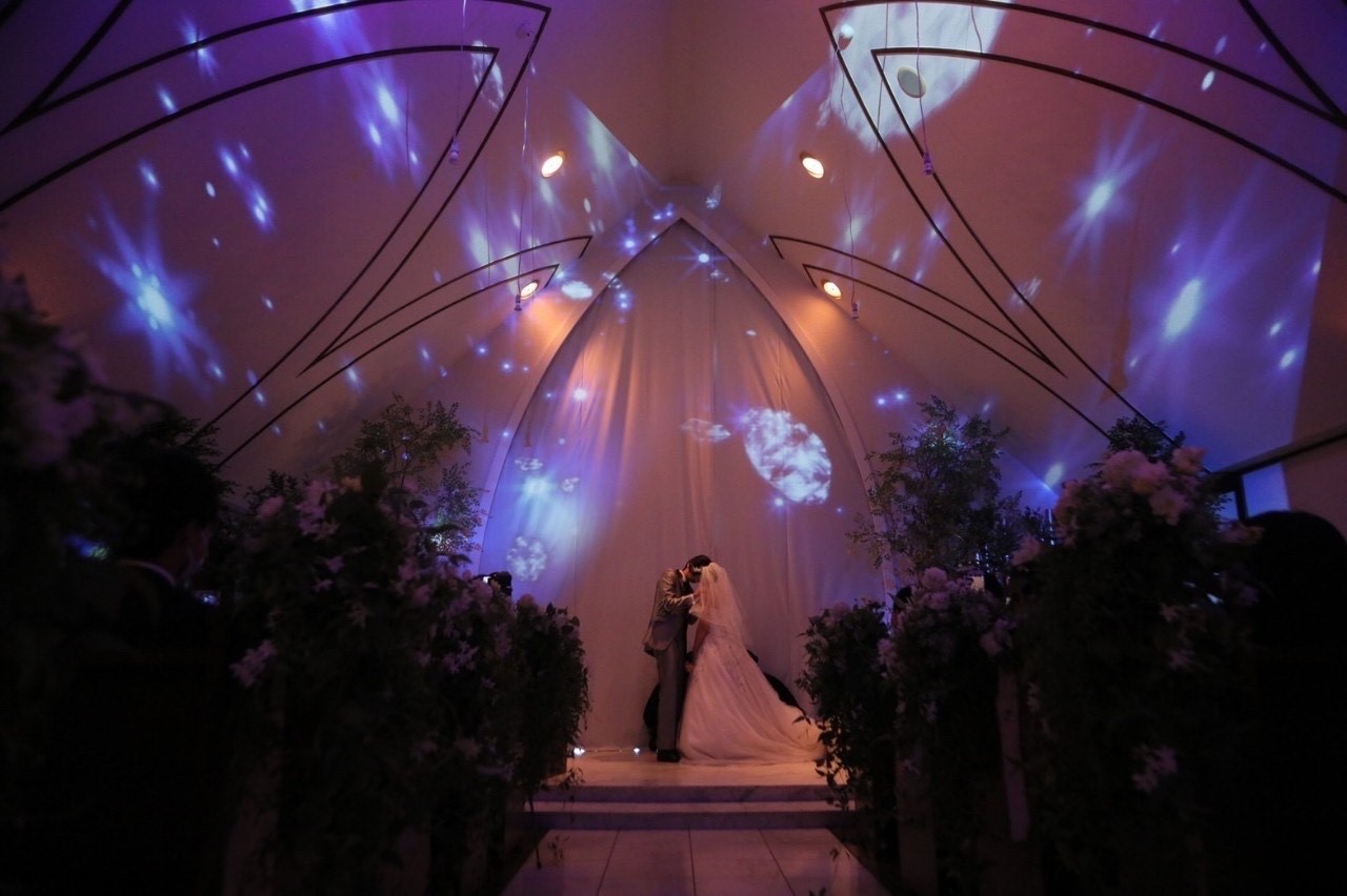 先日は 誓いのキスのタイミングで パッと明るい雰囲気になるようカーテンを開けました☆彡