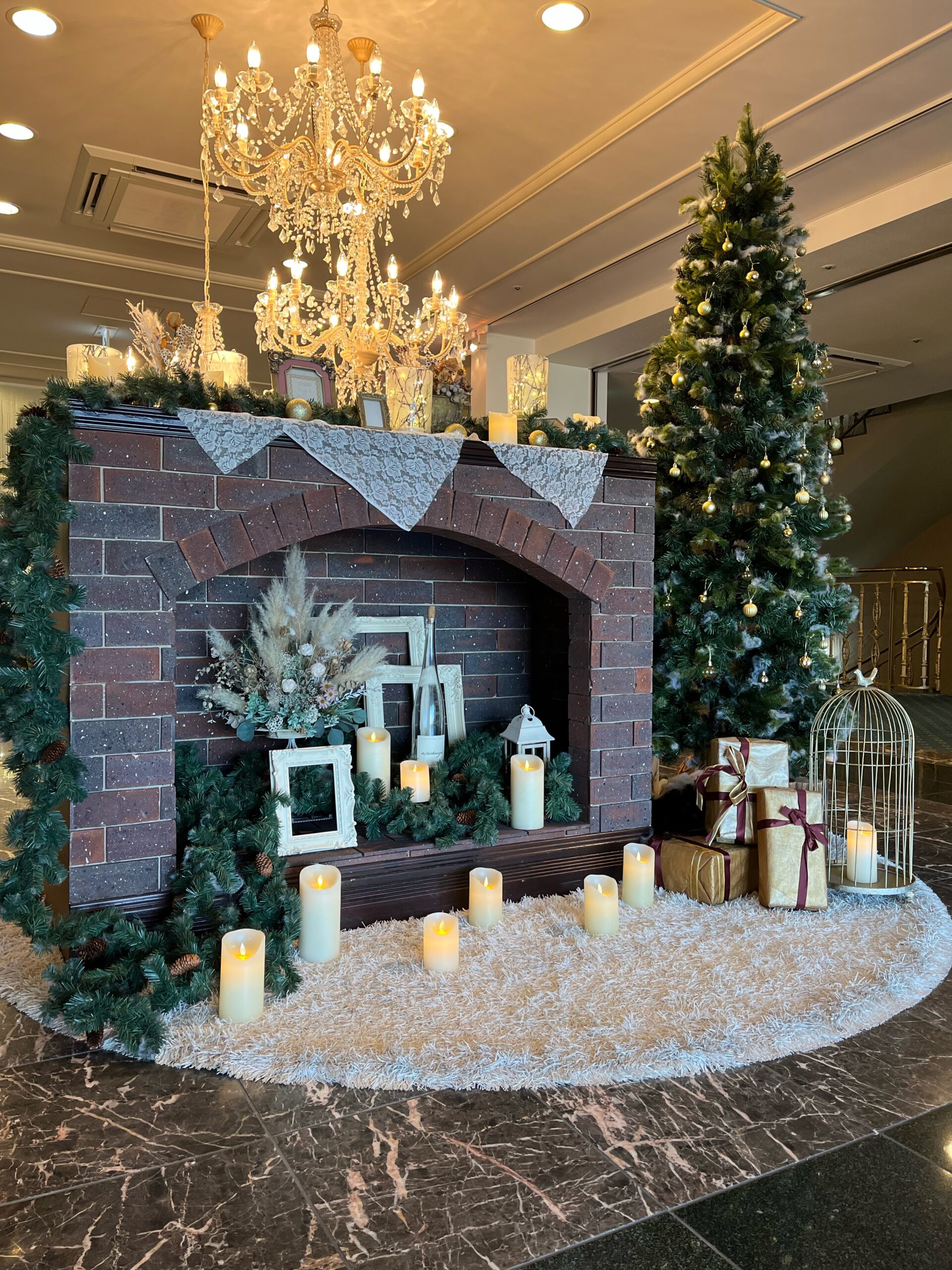 今年はツリーだけではなく、レンガの棚に小物やキャンドルなどもご用意しております 😆