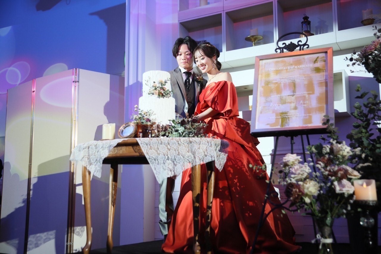 高砂やケーキなど お二人の選ばれた装飾に とっても合っていて素敵な結婚証明書の完成です!!