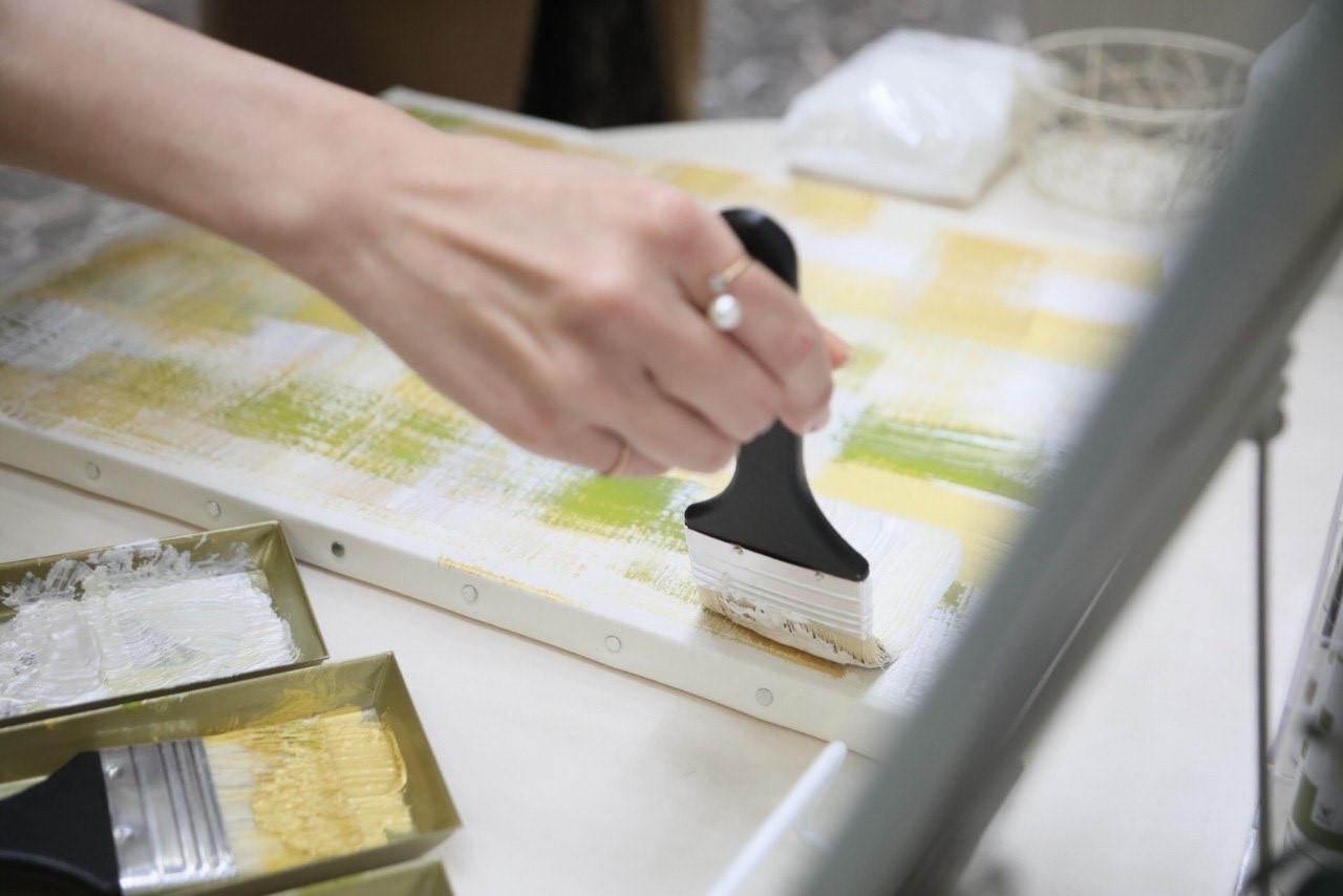 ひとり1本ずつ まっすぐ線を引いていただくと 世界にひとつだけのキャンバスが仕上がりました💛