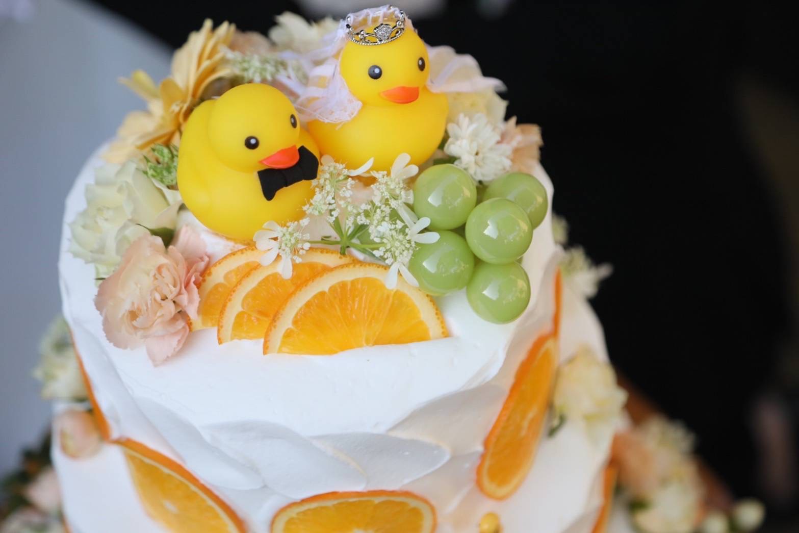 お二人の思い出の“アヒル”が乗った可愛らしいウエディングケーキでした😊
