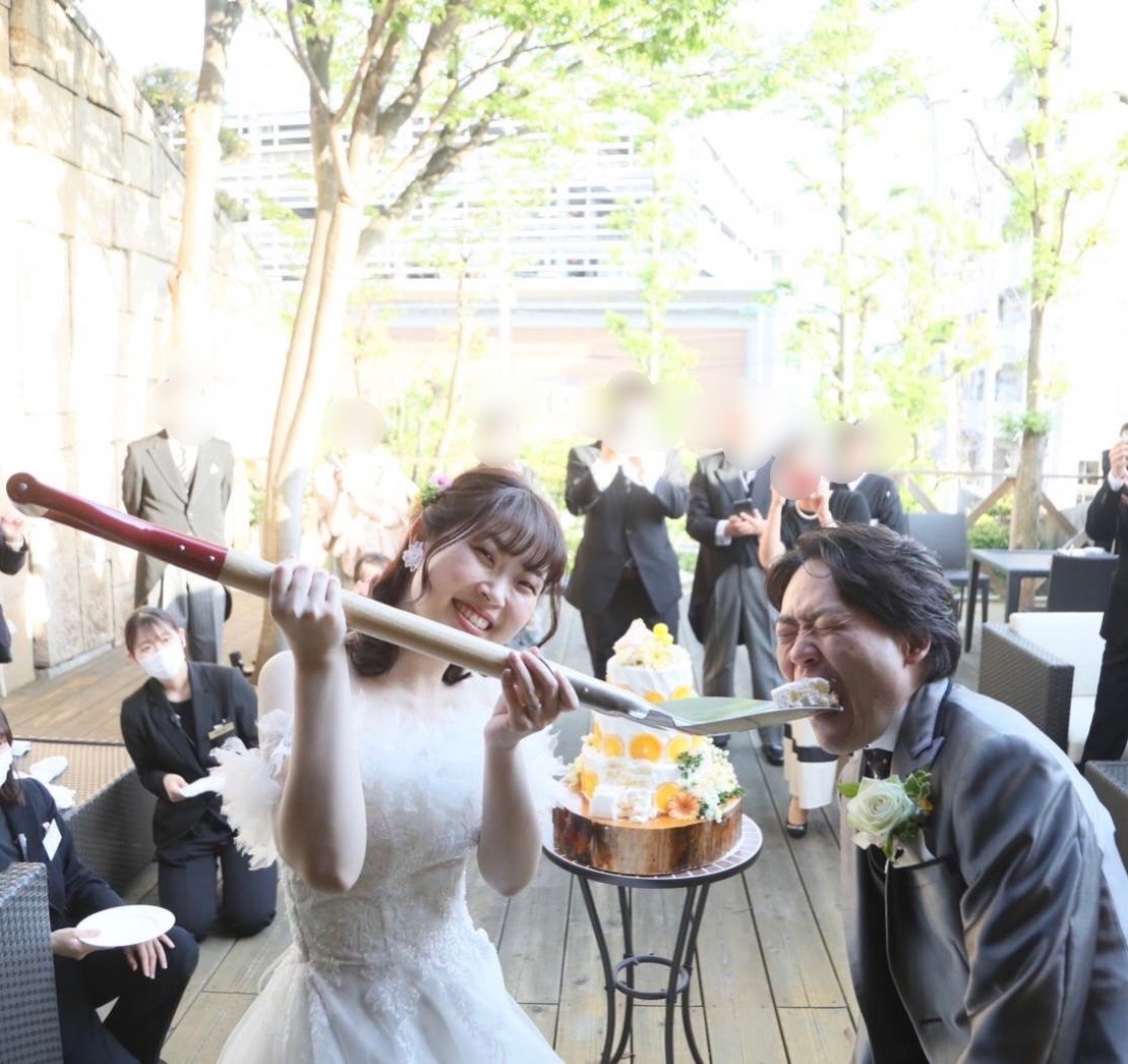 先日のご結婚式ではテラスでケーキ入刀を行いました。