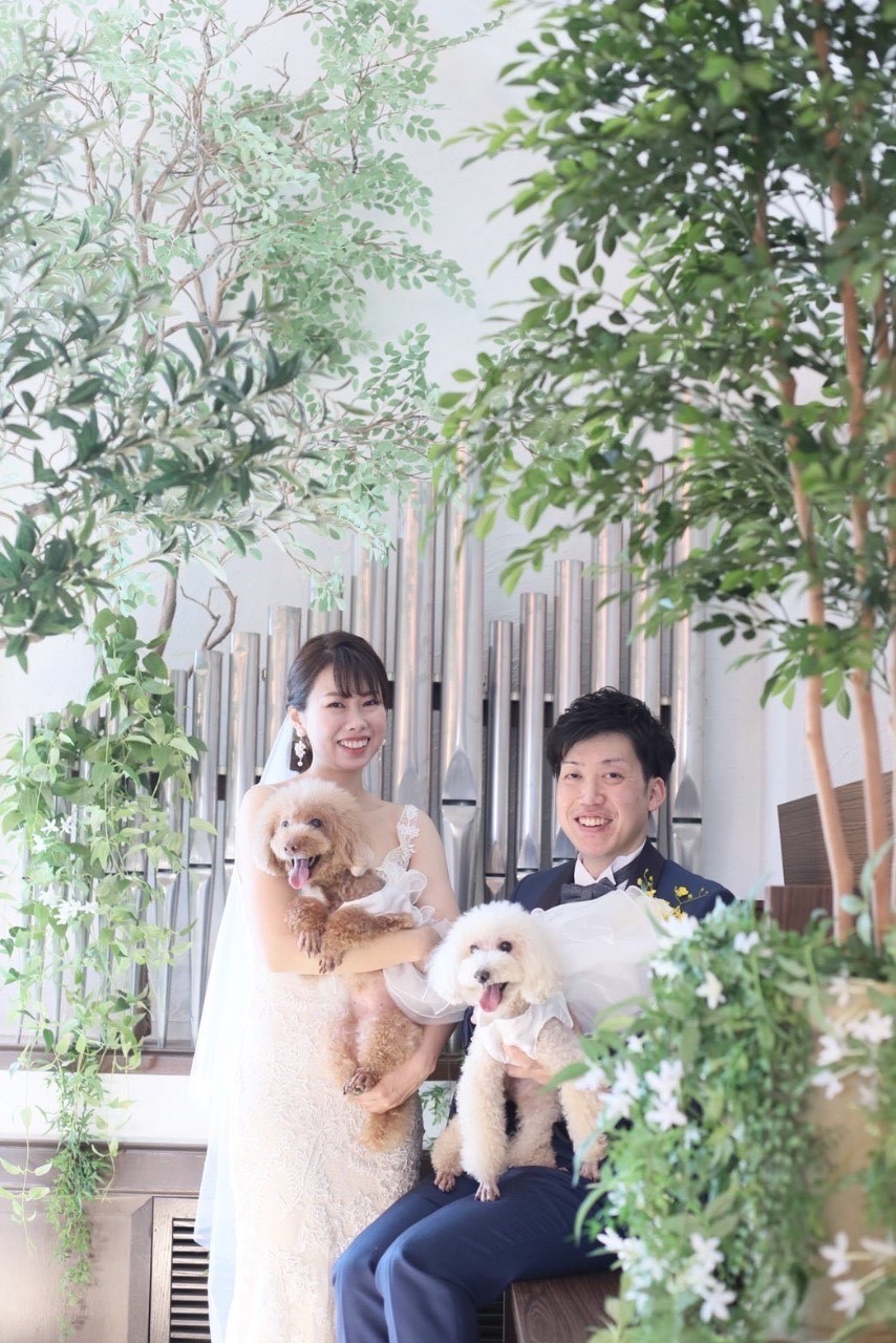 挙式では お二人のたいせつなワンちゃんの くるみちゃん・ぷりんちゃん にリングドッグとして活躍してもらいました🐶♡