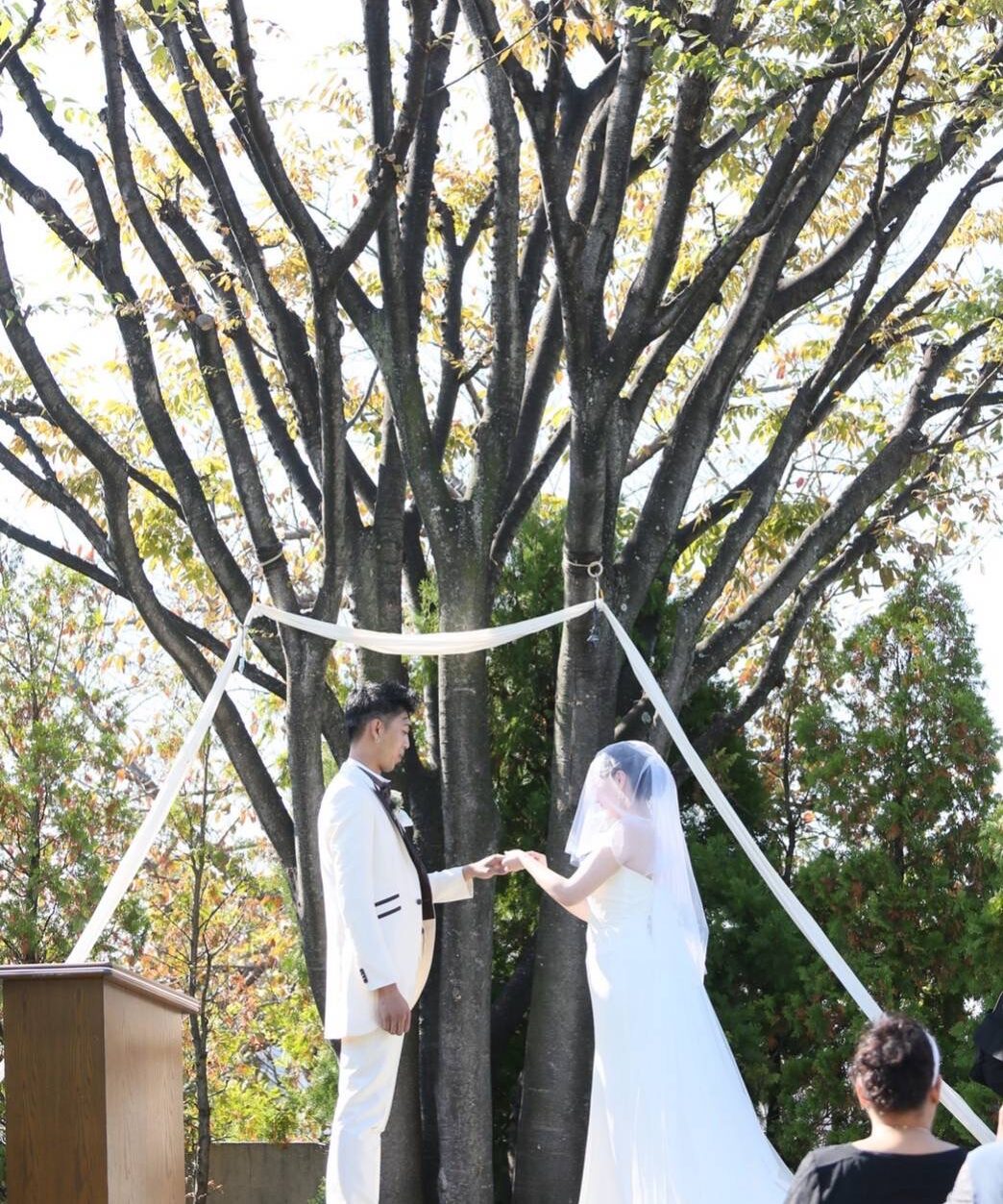 挙式=チャペル と想像される方が多いと思うのですが ガーデンでの人前式で ゲストの皆様も新鮮な挙式を楽しんでいただきました😊
